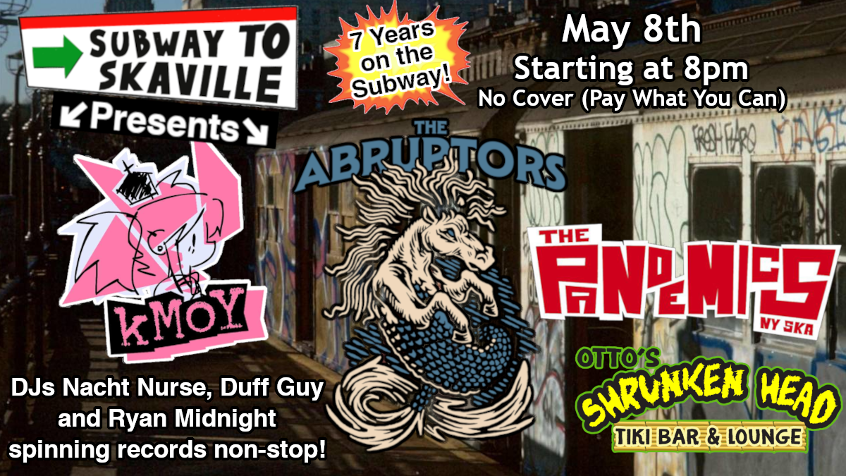 Subway to Skaville is your monthly ska party with a tiki twist, hosted the second Friday of every month at Otto’s Shrunken Head (East Village, NYC), and bringing you the best of the ska genre in all its styles.